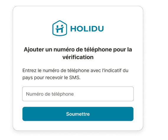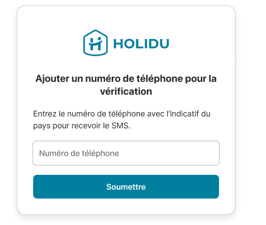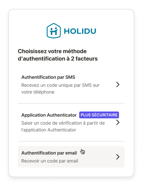 Pour garder votre compte et vos données sécurisées, Holidu utilise l’authentification à deux facteurs (2FA). Cette couche de sécurité supplémentaire protège votre compte même si quelqu'un d'autre connaît votre mot de passe.